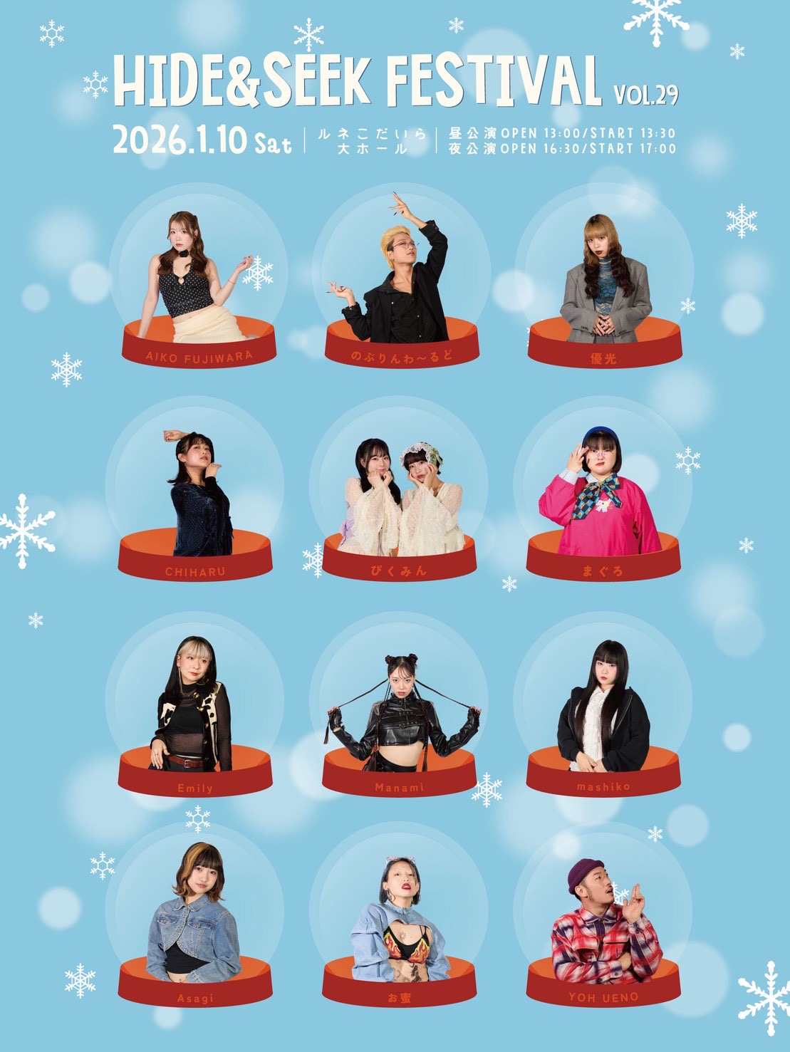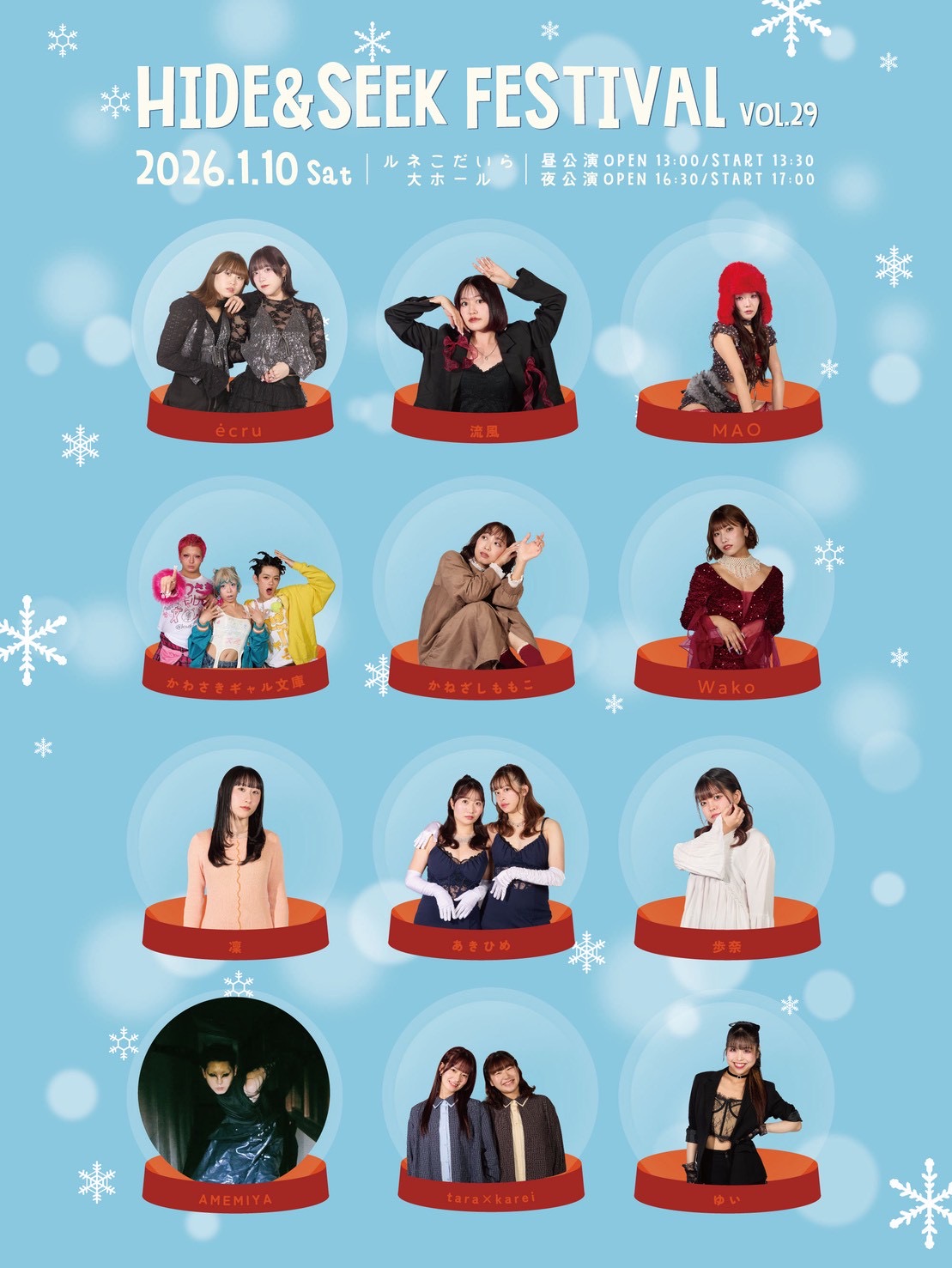 | 時間 | 昼公演 開場:13:00/開演:13:30 夜公演 開場:16:30/開演:17:00 |